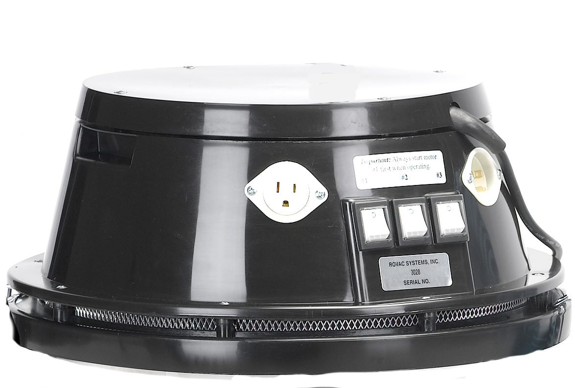 Powerhead with 3 motors as supplied for our plastic of stainless 3 motor ROVAC® chimney and dryer vent vacuums. 36' 12/3 Cord powers motor 1 and 2. 3rd motor power supplied by extension cord (not inc.) plugged into flanged inlet to right of motor 3 switch. HEPA filter not included. New HEPA Rod holding system, call or send pictures of what you have and we will be sure you have the correct hardware to install your filter, usually a longer all thread rod is needed. Our number is 802-773-3600, 8-6 Eastern Time