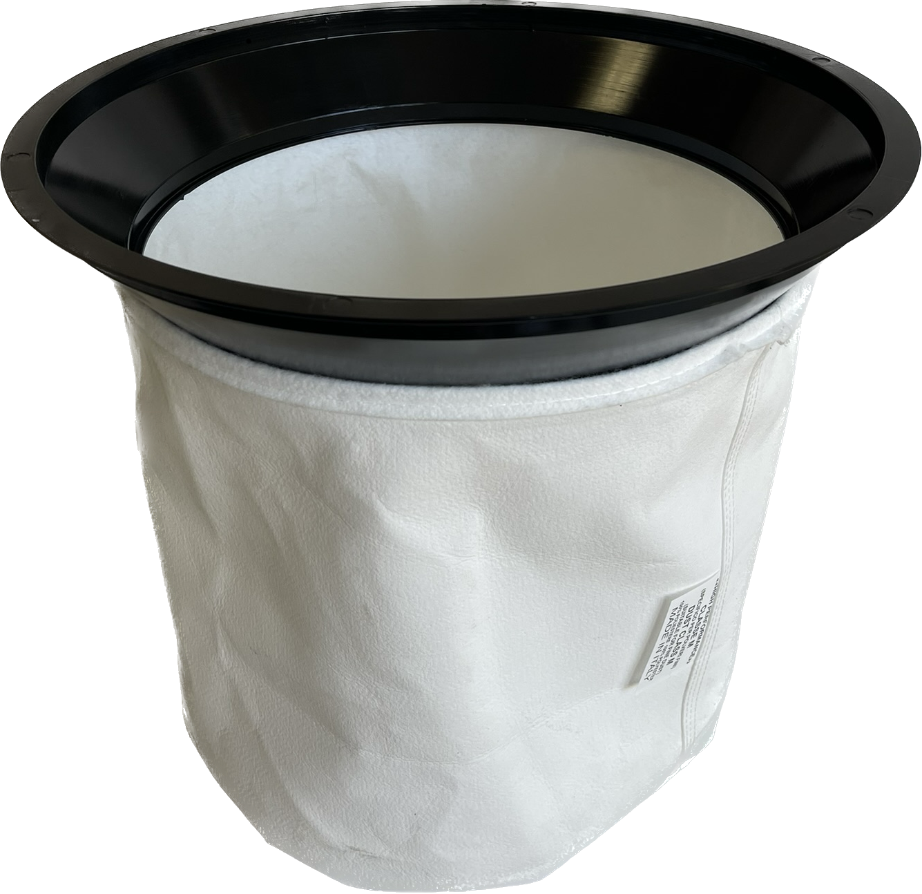 May be washed in a slop sink with a drop of two of Dawn detergent. Push it up and down and roll up the bag portion to get water into and flowing through the fabric. Rinse and repeat until water in sink is clear. Roll up fabric to wring it out without twisting which might damage the coating. If there are cuts in the coating you will see soot staining on the inside of the filter. If stained replace the filter. Also replace when cleaning no longer returns good air flow. Typical life is 6-12 months of daily use.