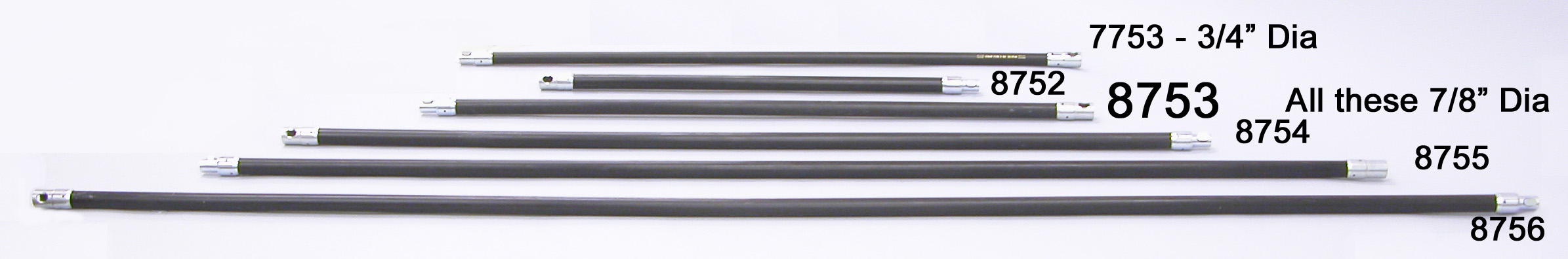 Black poly rod 3' long x 7/8" diameter.  Was the best choice for power sweeping fireplace flues from inside the home.  Most folks have switched to our 5/8" solid Slick Rod (5830) in place of this older ButtonLok rod.