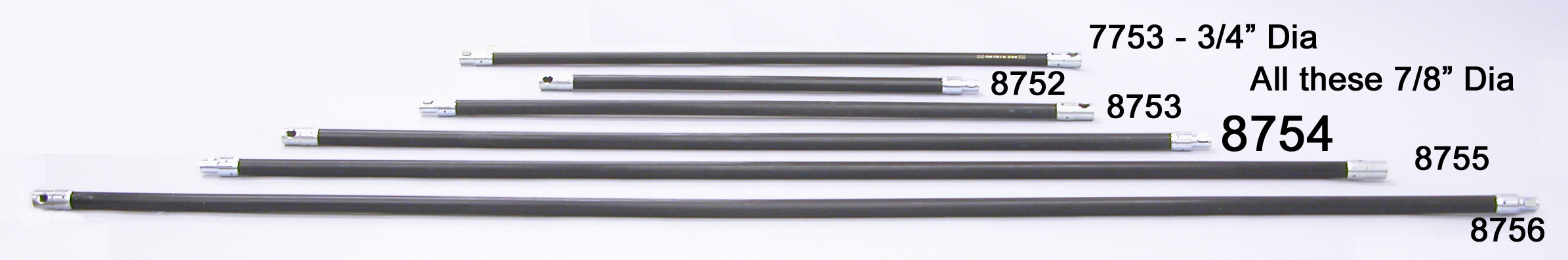 4' long version of our 7/8" diameter black poly rod.  18 years history with this power sweeping rod and now its being replaced by our 5/8" solid Slick Rod x 3' long (5830) or the new ButtonLok II double ButtonLok 4' long (5840D).  Used in masonry fireplaces for the most part.  Pinned ends are field serviceable, call for instructions.