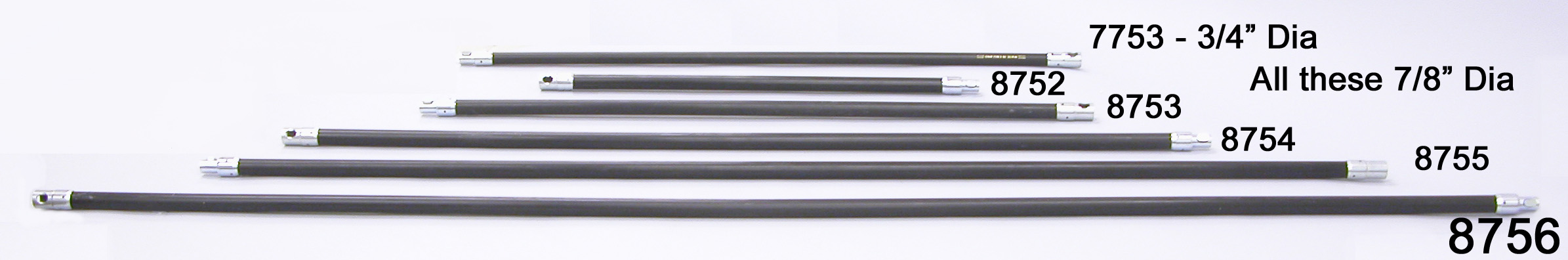 Longest of our 7/8" black poly rods.  Field serviceable pinned ends.  6' rods are great when you have the room to work them such as on fireplaces.