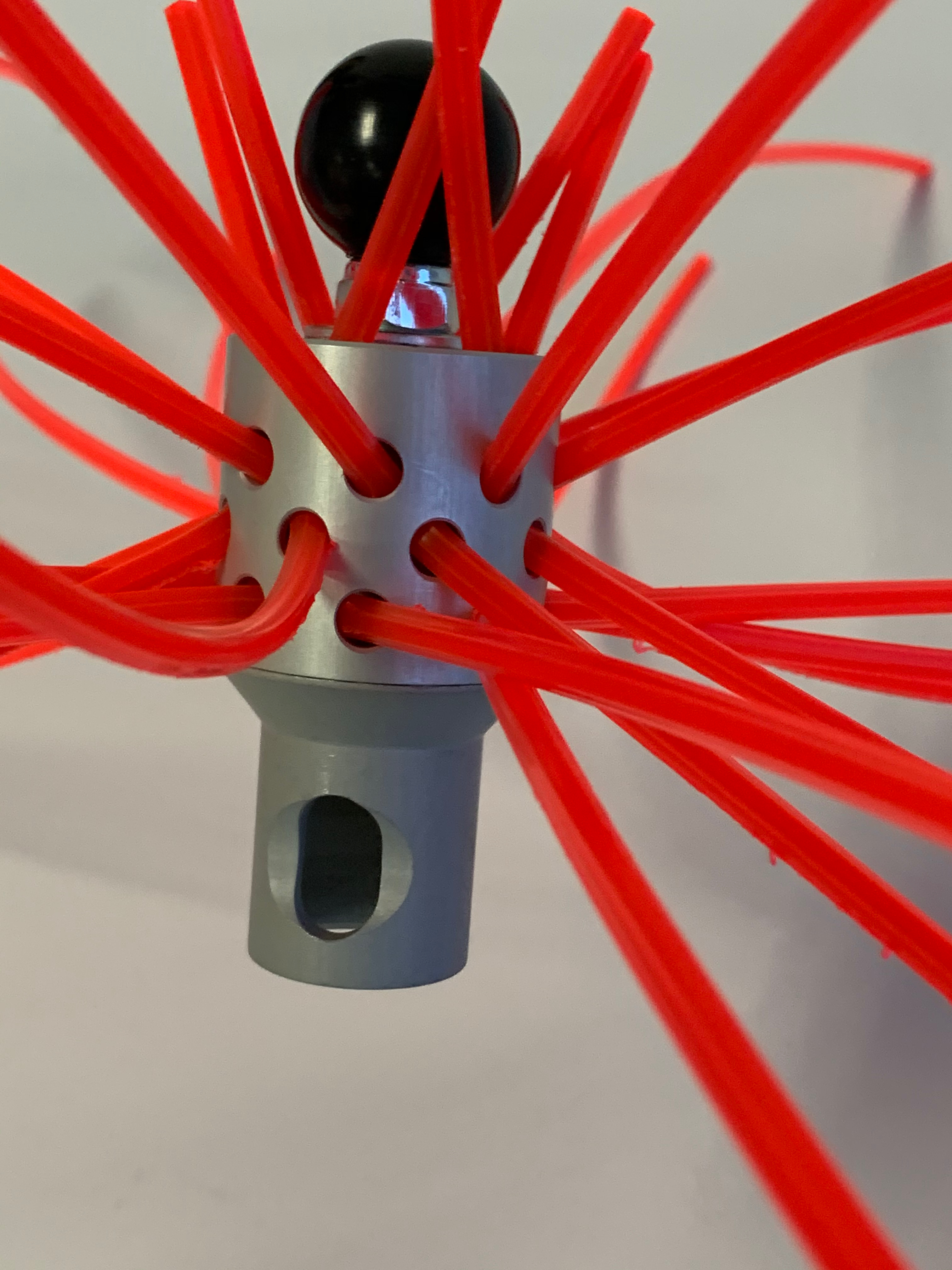 New design, anodized aluminum Medusa Max with more strands for greater cleaning power. Light weight to reduce battery usage. Closed whip design prevents "hooking" on top of liners or mismatched tiles. For use in liners, class A, factory built chimneys and flue tile. Available in a 12" model, item 7260D. 12 strands of 24" .155" shark tooth nylons for 50% more cleaning power than the regular Medusa (7265).