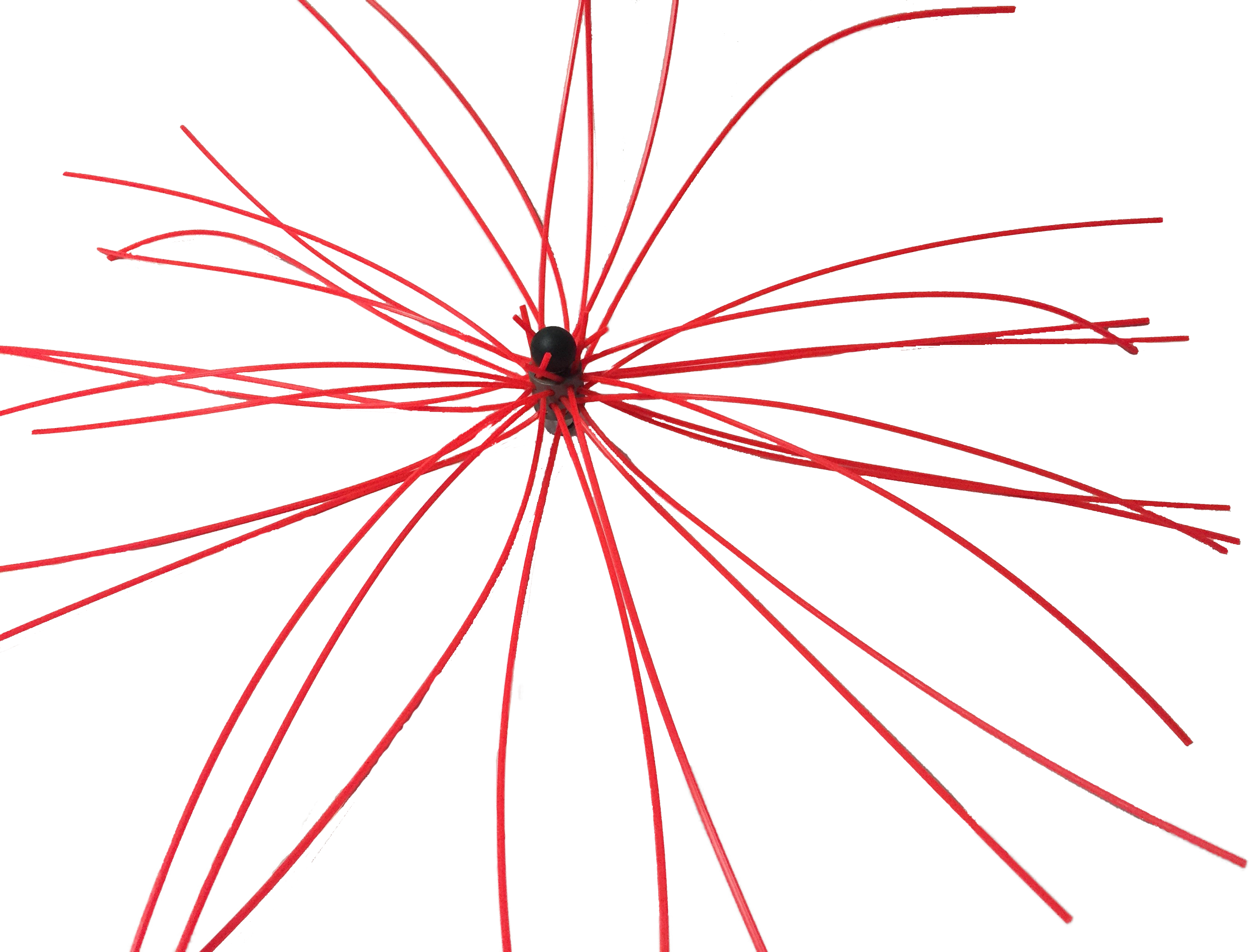 Extra Large Medusa Whip for chimneys up to 24" on a side. 16 36" strands fill the "cup" giving 32 whip ends spinning around. Use carefully at chimney top, you have a lot of weight spinning around which is easy when constrained within the chimney but can become "slap happy" up inside a large cap and cause damage. It is best when doing a first cleaning to manually push the rods to the top until they exit into free air or you bang the chimney cap so you know your distance
