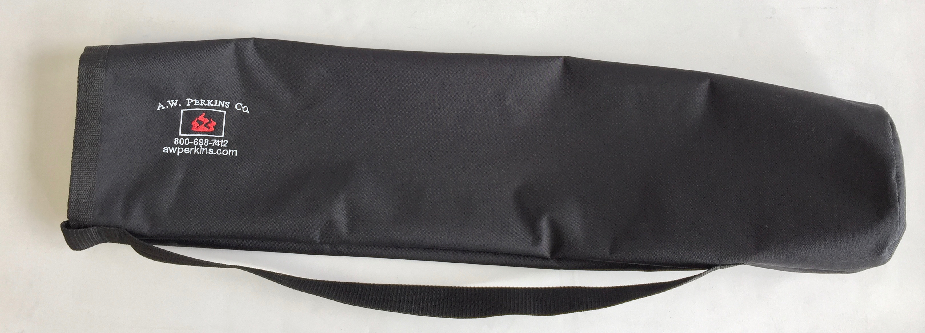 Rugged ballistic nylon bag, with shoulder strap, reinforced top edge and double bottom for strength. Approximately 7" diameter, holds 20 rods easily. 33" high so whips/brushes will stick out the top. To cover whip heads order the 7621 Whip Head Cover. Made in the USA.