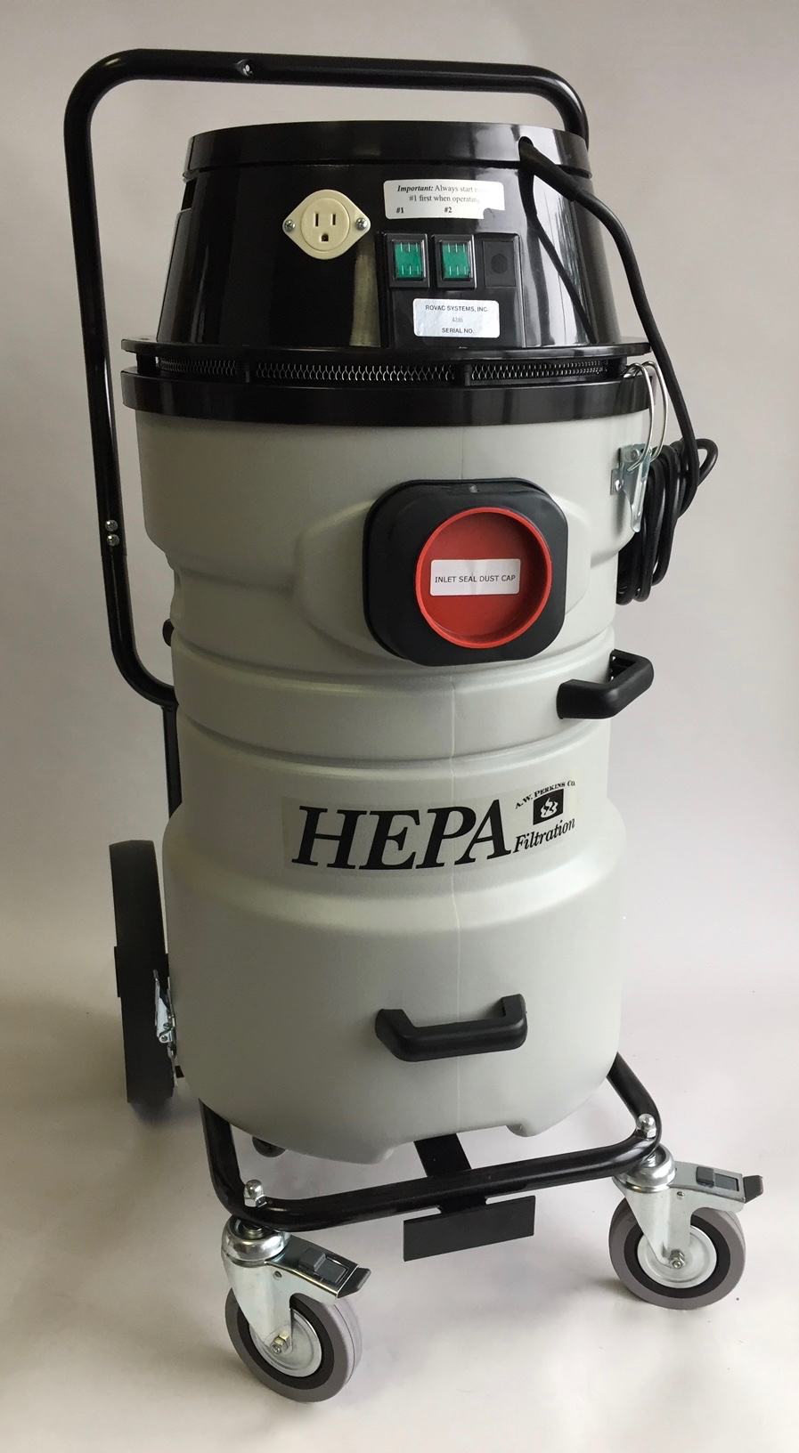 **SPECIAL** 2 Motor ROVAC® Dryer Vent Cleaning Vacuum. 280 CFM, includes microbag filter (#1121) and HEPA filter (#1123). 3" Gray hose x 12.5', 1.5" hose x 8' plus accessories (round brush, crevice tool, floor brush, 2 x 18" extension wands, and tool adapter. 54 lbs empty weight. Tilt to dump trolley feature saves effort. Tank is 20 gallons and may be removed from trolley and hand carried with side handles. Large 12" rear wheels and 5" "total lock" casters. 12 gauge cord is 36' long. Draws 15 amps so plug into a 20 amp circuit if using two motors. Ametek motors have user serviceable brushes which last about 1000 running hours, part number 1143. Always turn on motor 1 first to close internal valves. Even though its calculated by the shopping cart, freight will not be charged to lower 48 states. AK, HI, Canada freight is added.