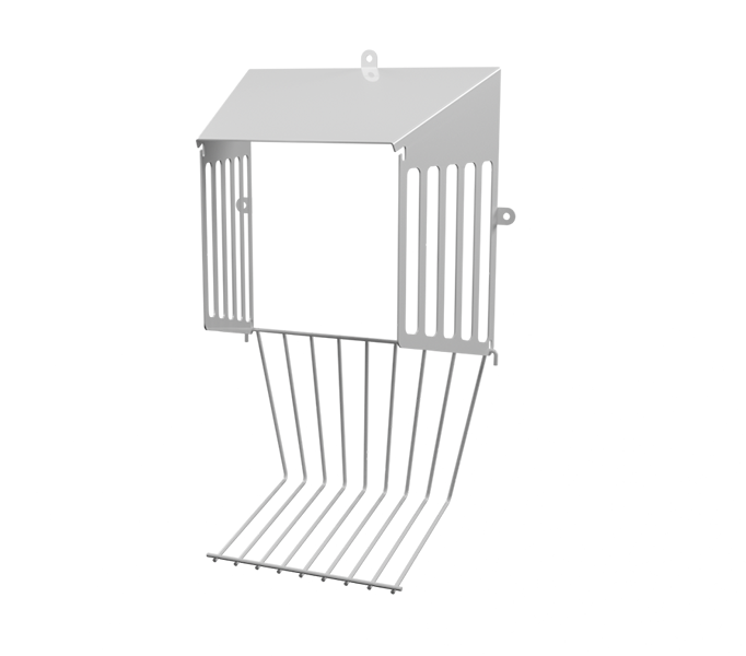 The Defender’s vertical bars keep the air flowing, allowing lint to pass through to minimize blockages. The Defender protects against birds and squirrels entering the dryer exhaust system. Installation is simple by placing The Defender directly over the existing external wall vent and securing it with screws. Available in two sizes, inner dimensions of 6.5” wide and 8” wide. Made in the USA from zinc coated steel with a powder coating in white, tan and brown.