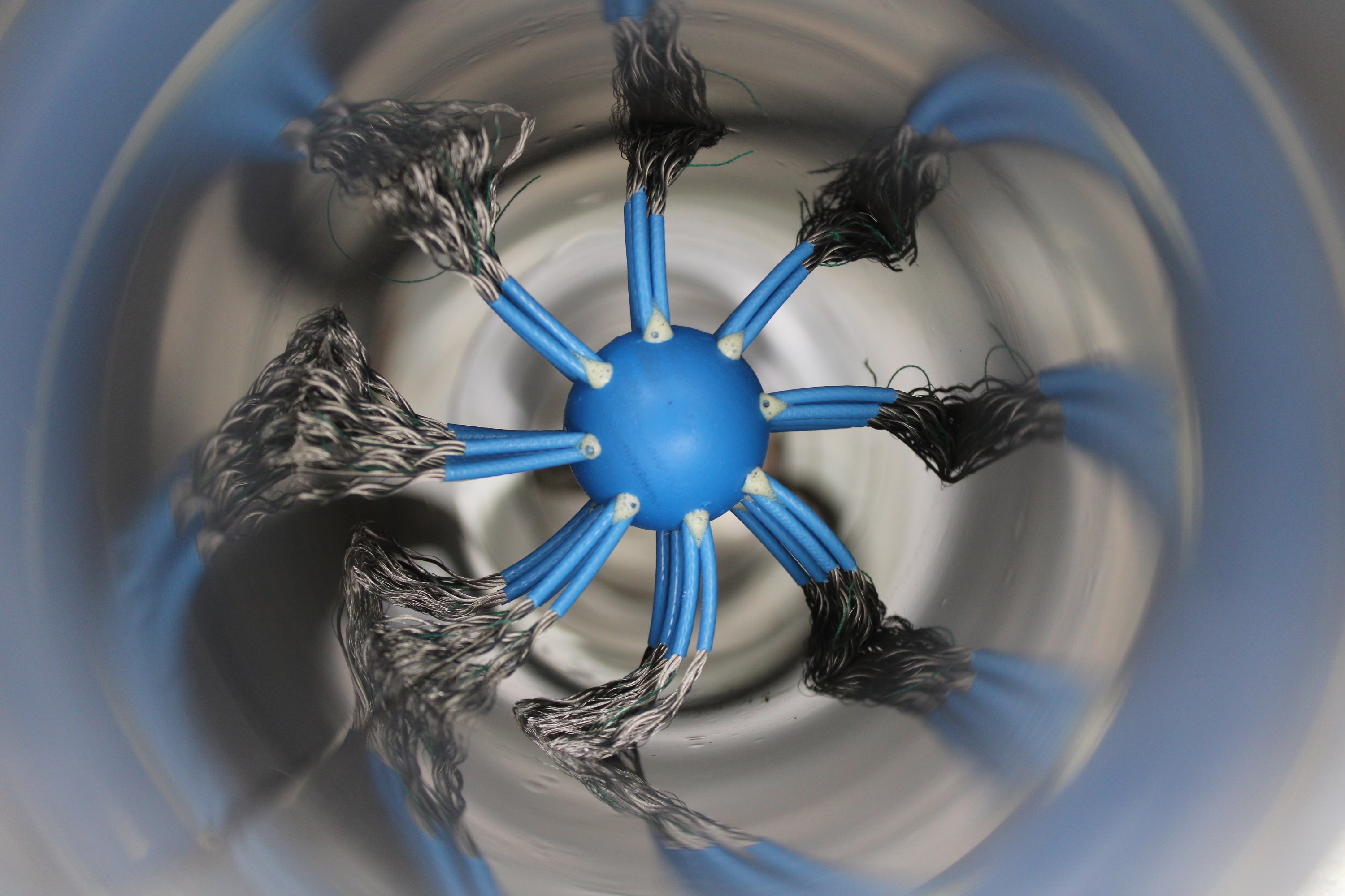The fantastic ProSpin brush is now available WITH BUTTONLOK FITTING DIRECTLY IN THE BRUSH, no adapter needed. Often used with the 5169V spring leader with plastic cover. Brush made by ProSpin with our fitting, not a "knockoff"! 4" size, larger sizes 6" and 8" also available.