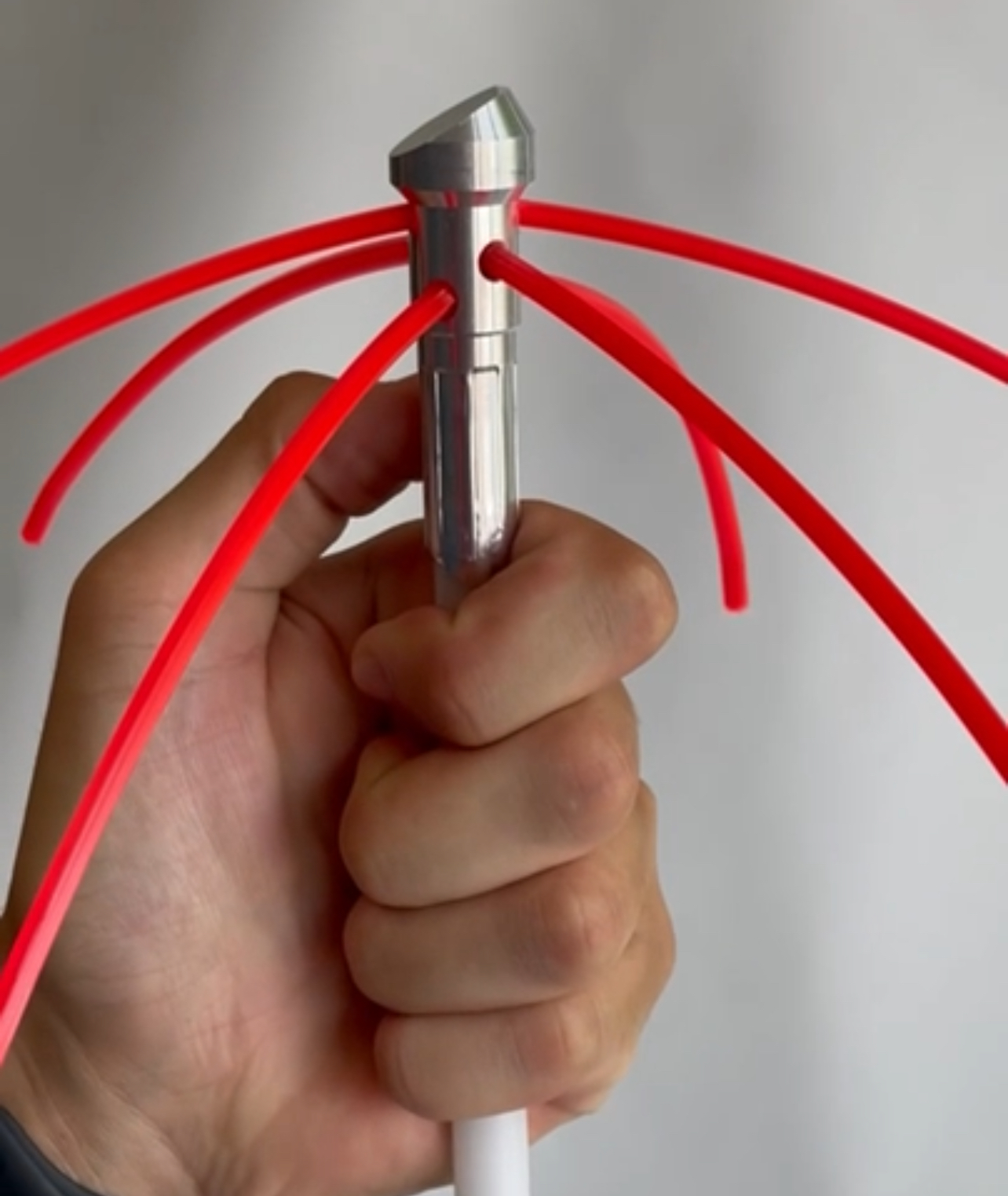The Whip Brush and first rod are combined in the TPowr System. This item comes with 12" and 24" strands so you can cover all flue sizes from 5" to 16"x16". Easy to change strands, the ToolLess design is shown in the video. In round flues rotate in either direction. In sure and rectangular flues the whip will tend to walk in the direction of rotation. Simply reverse the drill rotation once you reach the top of the stack and come back down in the opposite rotation which will get all four corners swept!